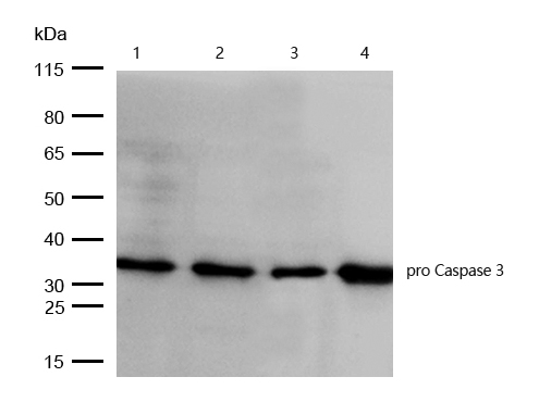 All lanes: pro Caspase 3 Rabbit mAb at 1/1k dilution