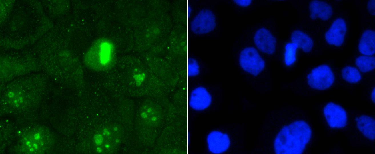 Immunofluorescent analysis of Hela cells, using Ki67 Antibody.
