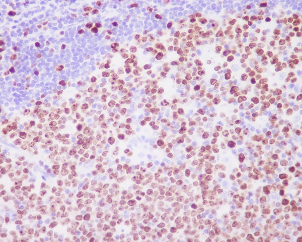 Immunohistochemical analysis of paraffin-embedded human tonsil, using Ki67 Antibody.