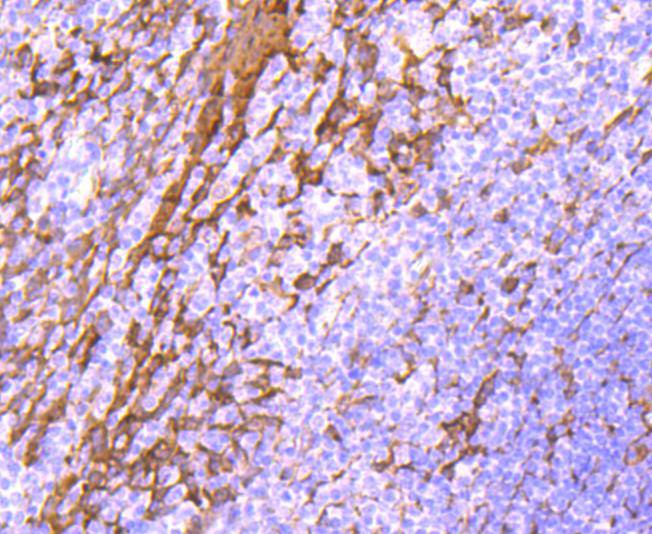 Immunohistochemical analysis of paraffin-embedded human tonsil tissue using anti-Hsp27 antibody. Counter stained with hematoxylin.