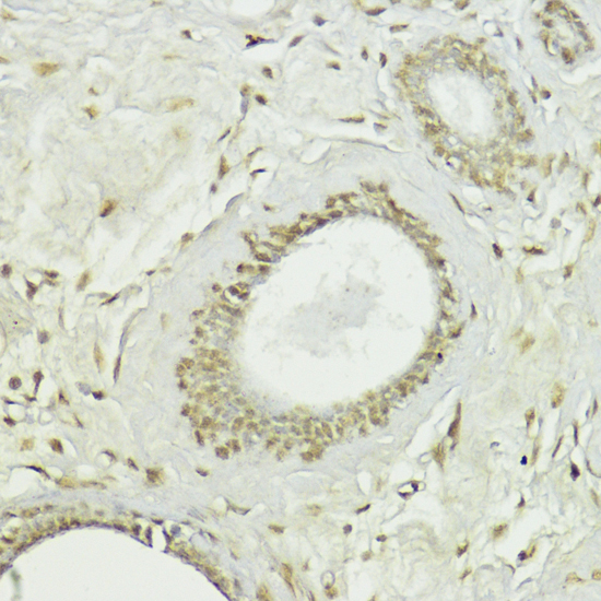 Immunohistochemistry of paraffin-embedded human breast using Snail at dilution of 1:100 (40x lens).