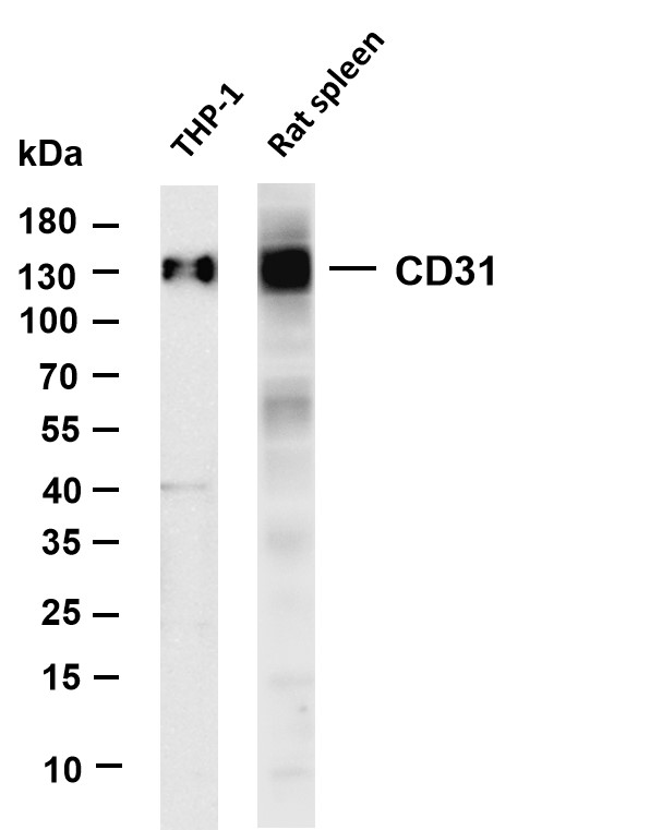 Various whole cell lysates were separated by 4-20% SDS-PAGE, and the membrane was blotted with anti-CD31 antibody. The HRP-conjugated Goat anti-Rabbit IgG(H + L) antibody was used to detect the antibody.