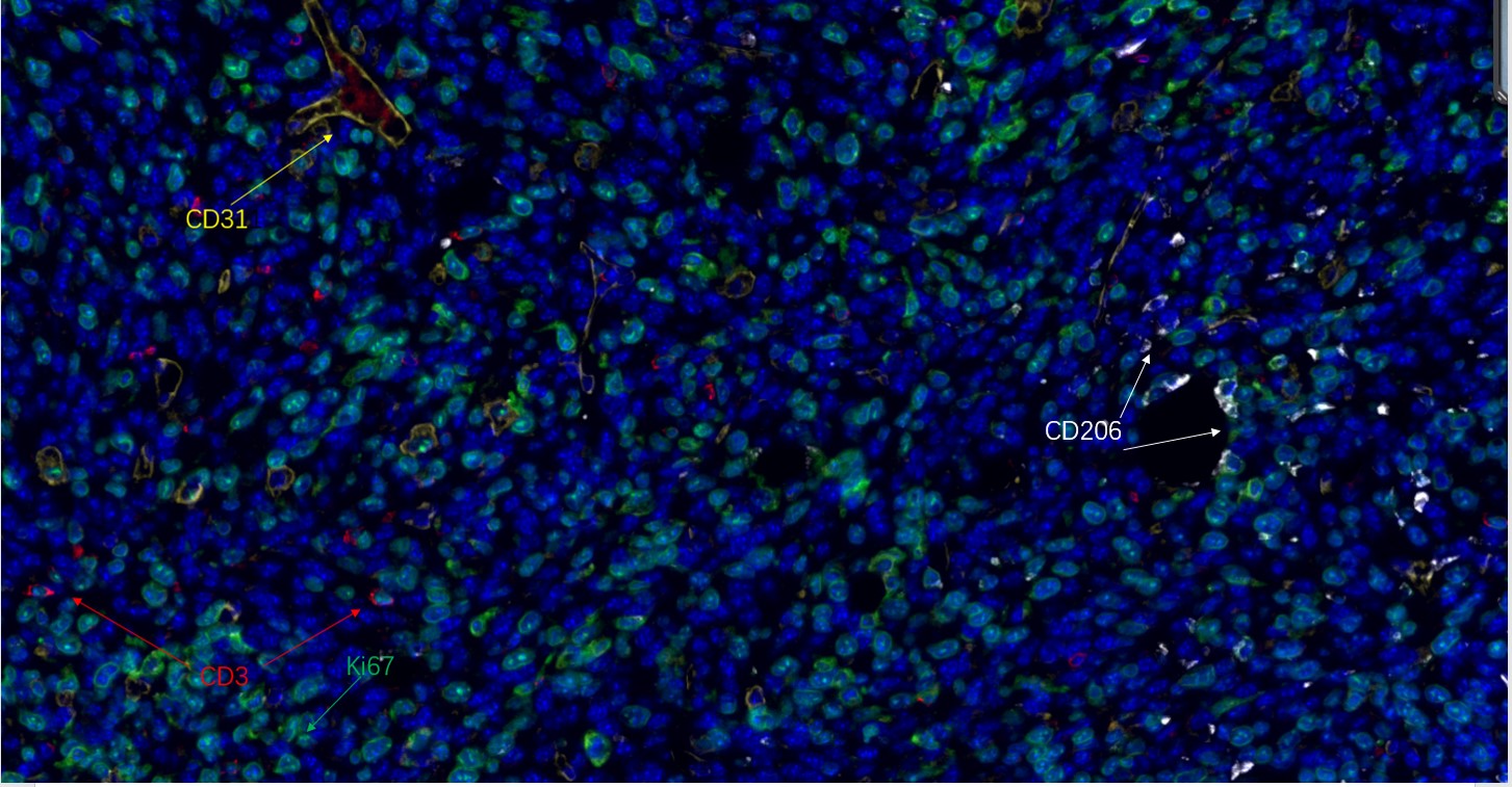 Fluorescence multiplex immunohistochemical analysis of human tonsil tissue (formalin-fixed paraffin-embedded section).