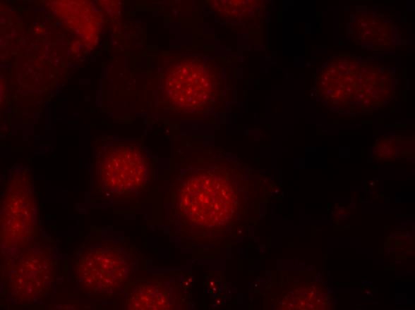 Immunofluorescence staining of methanol-fixed MCF7 cells using AFX(Phospho-Ser197) Antibody #11137.