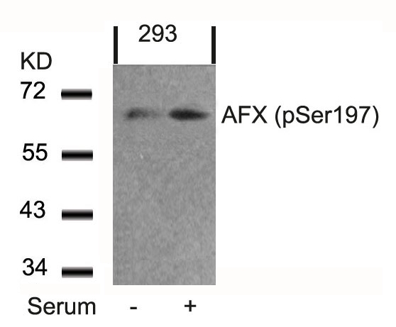 Western blot analysis of extracts from 293 cells untreated or treated with serum using AFX(Phospho-Ser197) Antibody #11137.