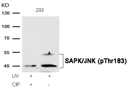 特异性 The antibody detects endogenous level of SAPK/JNK only when phosphorylated at threonine 183.