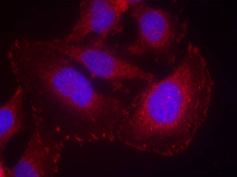 Immunofluorescence staining of methanol-fixed Hela cells using PLC-g1(phospho-Tyr771) Antibody #11523.