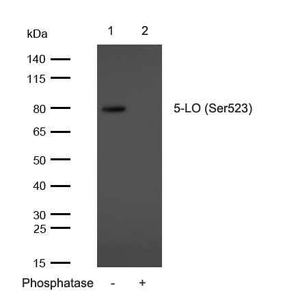 特异性Phospho-5-LO (S523) Polyclonal Antibody detects endogenous levels of 5-LO protein only when phosphorylated at S523.