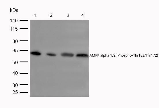 特异性Phospho-AMPK alpha (T172) Antibody detects endogenous levels of Phospho-AMPK alpha (T172)