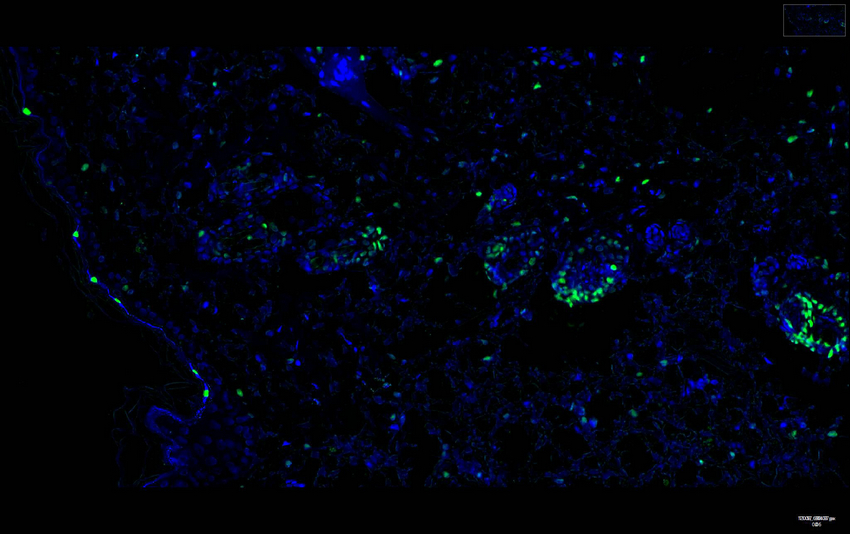 Immunofluorescence analysis of Rat skin tissue using c-Jun Antibody .