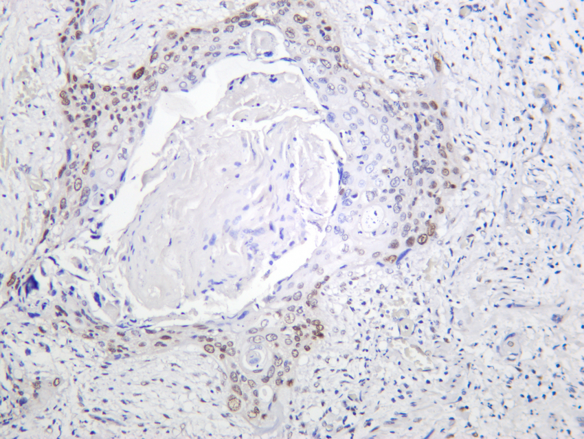 Immunohistochemistry of paraffin-embedded Human cervical carcinoma tissue using c-Jun Antibody .
