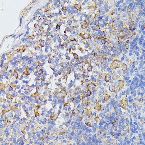 Immunohistochemistry of paraffin-embedded Rat lymph node using STAT1 Polyclonal Antibody.