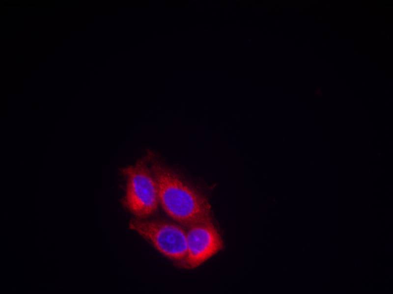 Immunofluorescence staining of methanol-fixed MCF cells using VEGFR2(Ab-951) Antibody #21079.