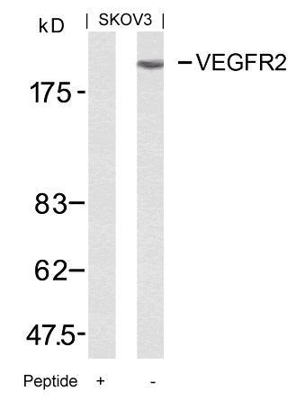 Western blot analysis of extracts from SKOV3 cells using VEGFR2(Ab-951) Antibody #21079 and the same antibody preincubated with blocking peptide.