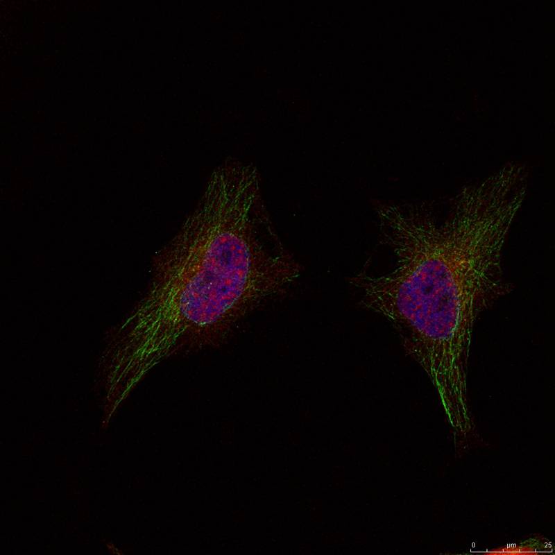 Immunofluorescence staining of methanol-fixed Hela cells using BRCA1(Ab-1524) Antibody #21139.