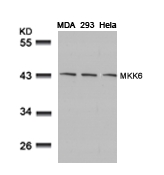 特异性The antibody detects endogenous level of total MKK6 protein.