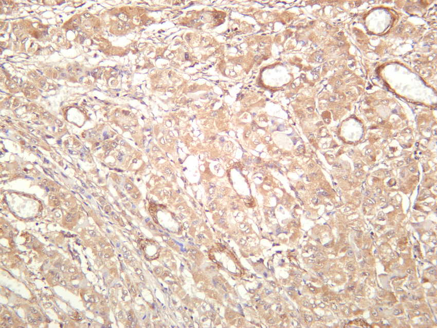 Immunohistochemistry analysis of paraffin-embedded Human hepatocellular carcinoma tissue using PAK1 Polyclonal Antibody.