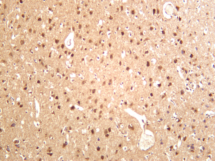 Immunohistochemistry analysis of paraffin-embedded Human brain tissue using PAK1 Polyclonal Antibody.