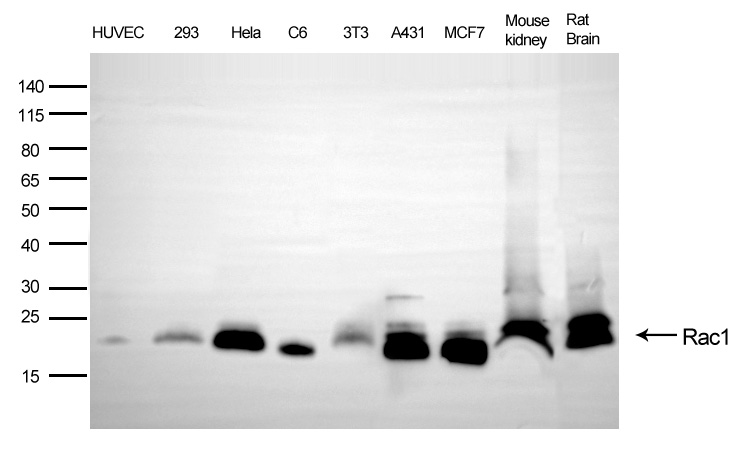特异性The antibody detects endogenous level of total Rac1 protein.