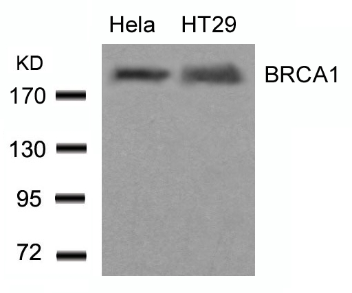 特异性The antibody detects endogenous level of total BRCA1 protein.