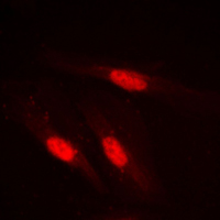 Immunofluorescence staining of methanol-fixed Jurkat cells using Smad2 Polyclonal Antibody.
