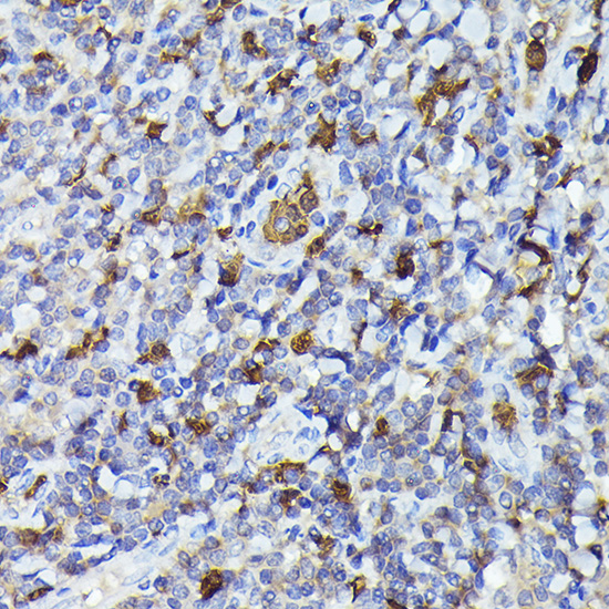 Immunohistochemistry of paraffin-embedded Human tonsil tissue using Smad2 Polyclonal Antibody.