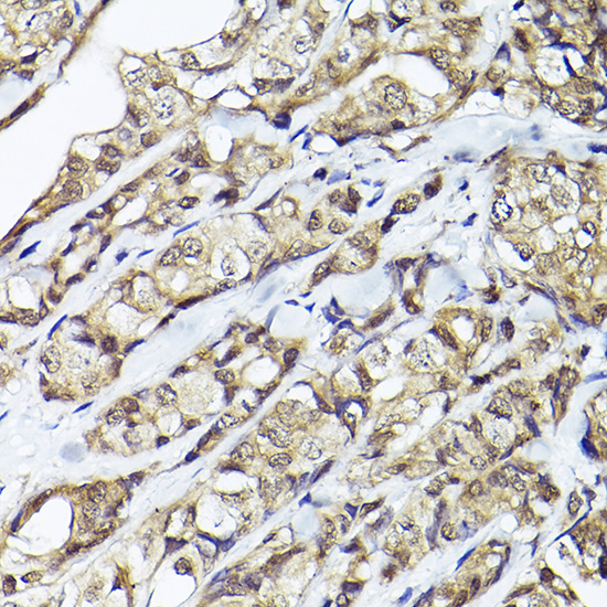 Immunohistochemistry analysis of paraffin-embedded Human breast cancer tissue using Smad1/Smad5/Smad8 Antibody.