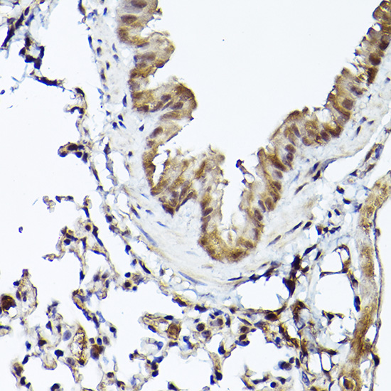 Immunohistochemistry analysis of paraffin-embedded Mouse lung tissue using Smad1/Smad5/Smad8 Antibody.