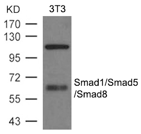 Western blot analysis of extracts from NIH-3T3 cells using Smad1/Smad5/Smad8 Antibody.