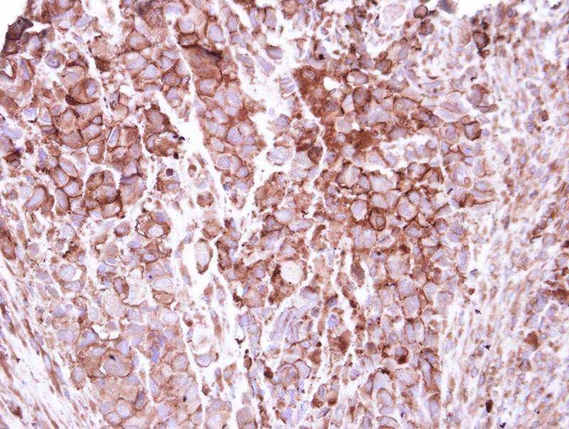 Immunohistochemical analysis of paraffin-embedded H661 xenograft, using ZO-1 antibody at 1: 250 dilution.