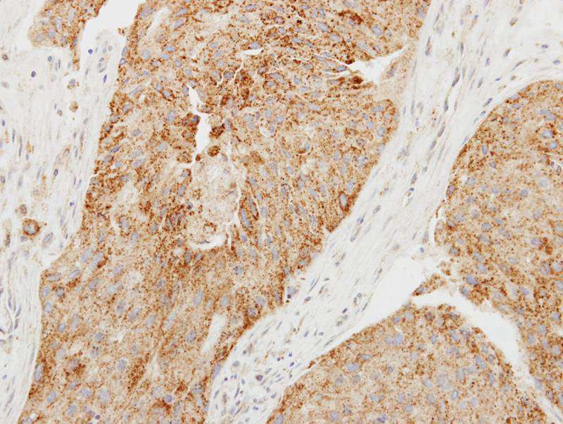 Immunohistochemical analysis of paraffin-embedded Breast ca, using Chromogranin C antibody at 1: 250 dilution.