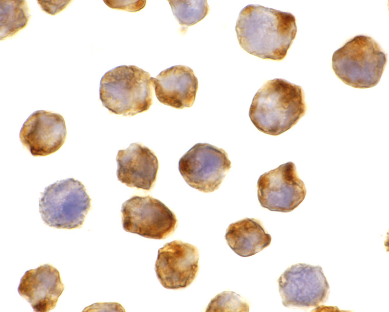 Immunohistochemistry of Apaf1 in K562 cells with Apaf1 antibody at 0.5 ug/ml.