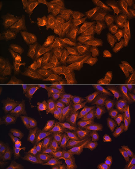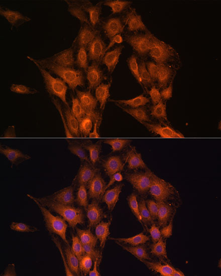 Immunofluorescence analysis of L929 cells using NF2 antibody.