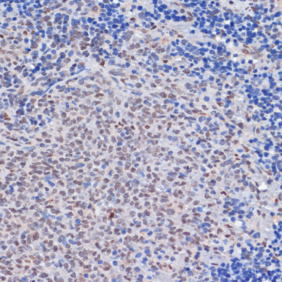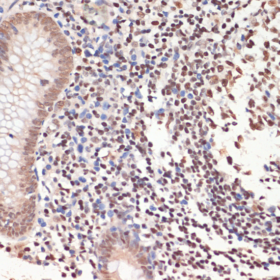 Immunohistochemistry of paraffin-embedded human appendix using PARP1 antibody at dilution of 1:200 (40x lens).