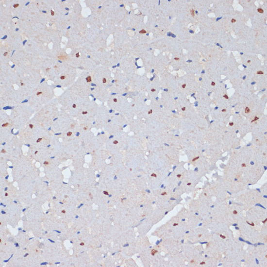 Immunohistochemistry of paraffin-embedded rat heart using PARP1 antibody at dilution of 1:200 (40x lens).