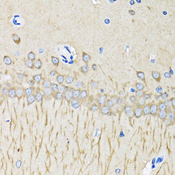 Immunohistochemistry of paraffin-embedded mouse brain using LC3B antibody at dilution of 1:100 .