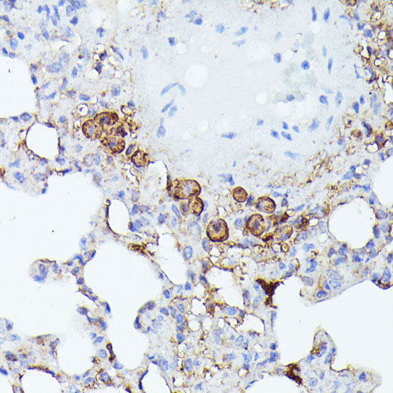 Immunohistochemistry of paraffin-embedded rat lung using NLRP3 antibody at dilution of 1:100 .