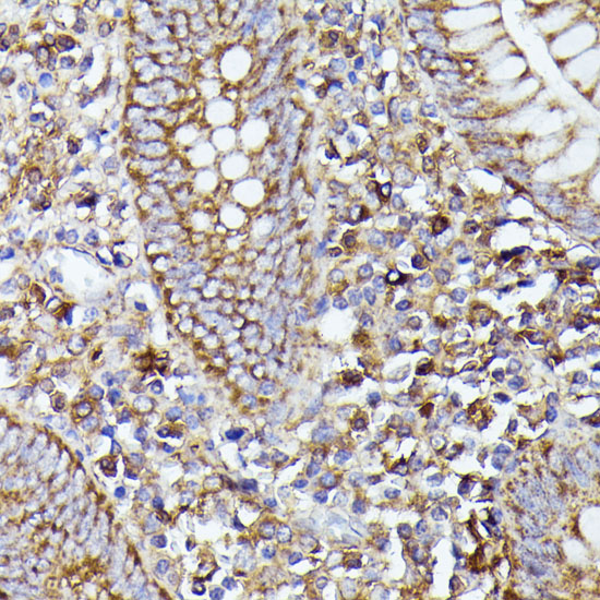 Immunohistochemistry of paraffin-embedded human appendix using NLRP3 antibody at dilution of 1:100 .