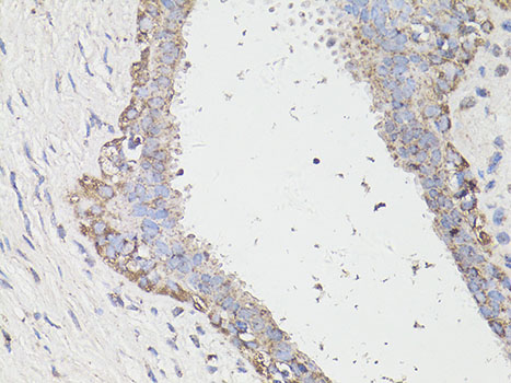Immunohistochemistry of paraffin-embedded human gastric cancer using LC3A / LC3B antibody.