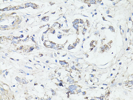 Immunohistochemistry of paraffin-embedded human mammary cancer using LC3A / LC3B antibody.