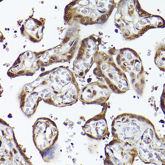 Immunohistochemistry of paraffin-embedded human placenta using UBQLN4 Rabbit pAb.