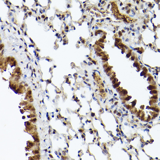 Immunohistochemistry of paraffin-embedded mouse lung using UBQLN4 Rabbit pAb.