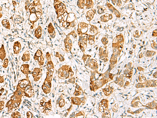 The image is immunohistochemistry of paraffin-embedded Human liver cancer tissue using (RIMS3 Antibody) at dilution 1/60.