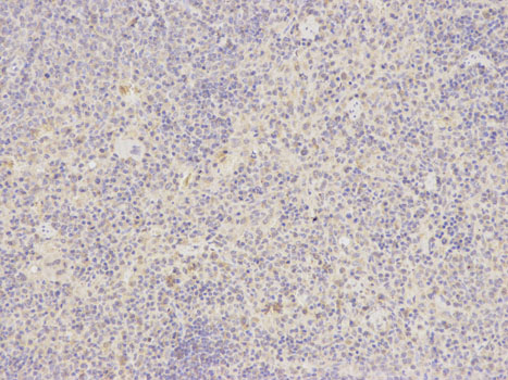 Immunohistochemical analysis of paraffin-embedded rat spleen using ATF6 antibody at dilution of 1:200 (200x lens).