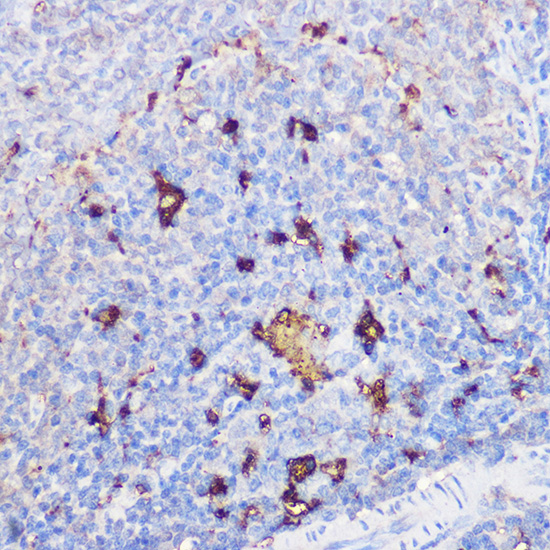 Immunohistochemistry of paraffin-embedded mouse spleen using IL6 Rabbit pAb.