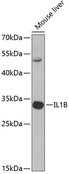 Western blot analysis of extracts of mouse liver, using IL1 beta antibody at 1:1000 dilution.