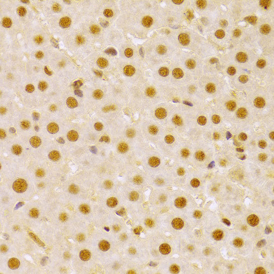 Immunohistochemistry of paraffin-embedded rat liver using CDC25A antibody at dilution of 1:100 (40x lens).