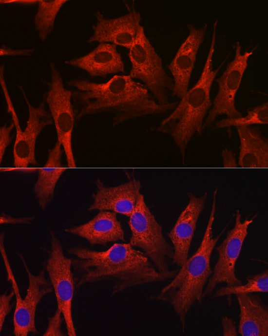 Immunofluorescence analysis of NIH-3T3 cells using HMGCR Rabbit pAb.