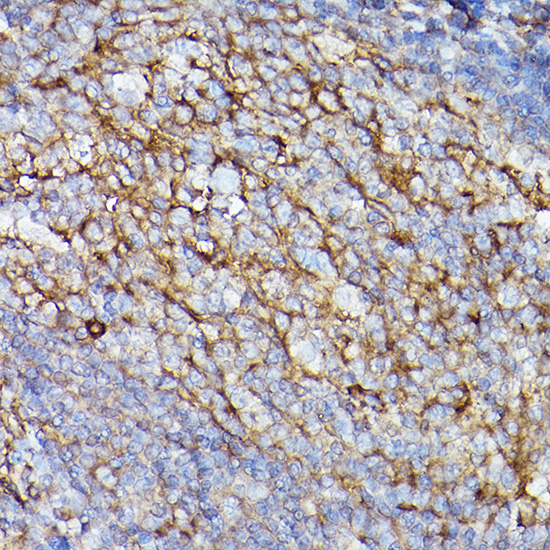Immunohistochemistry of paraffin-embedded human tonsil using ICAM-1/CD54 Rabbit pAb.