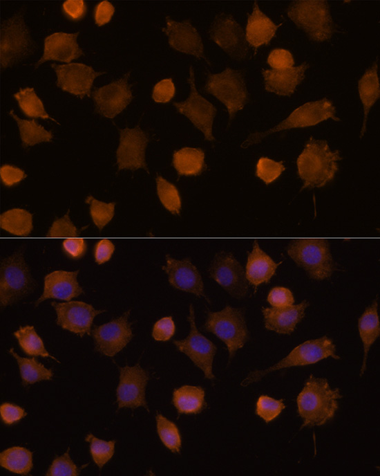 Immunofluorescence analysis of L929 cells using ICAM-1/CD54 Rabbit pAb.